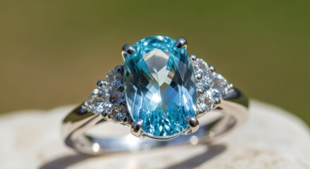 小粒のダイヤモンドで、アクアマリンの水色を引き立たせたデザインのリング(指輪)も人気です。